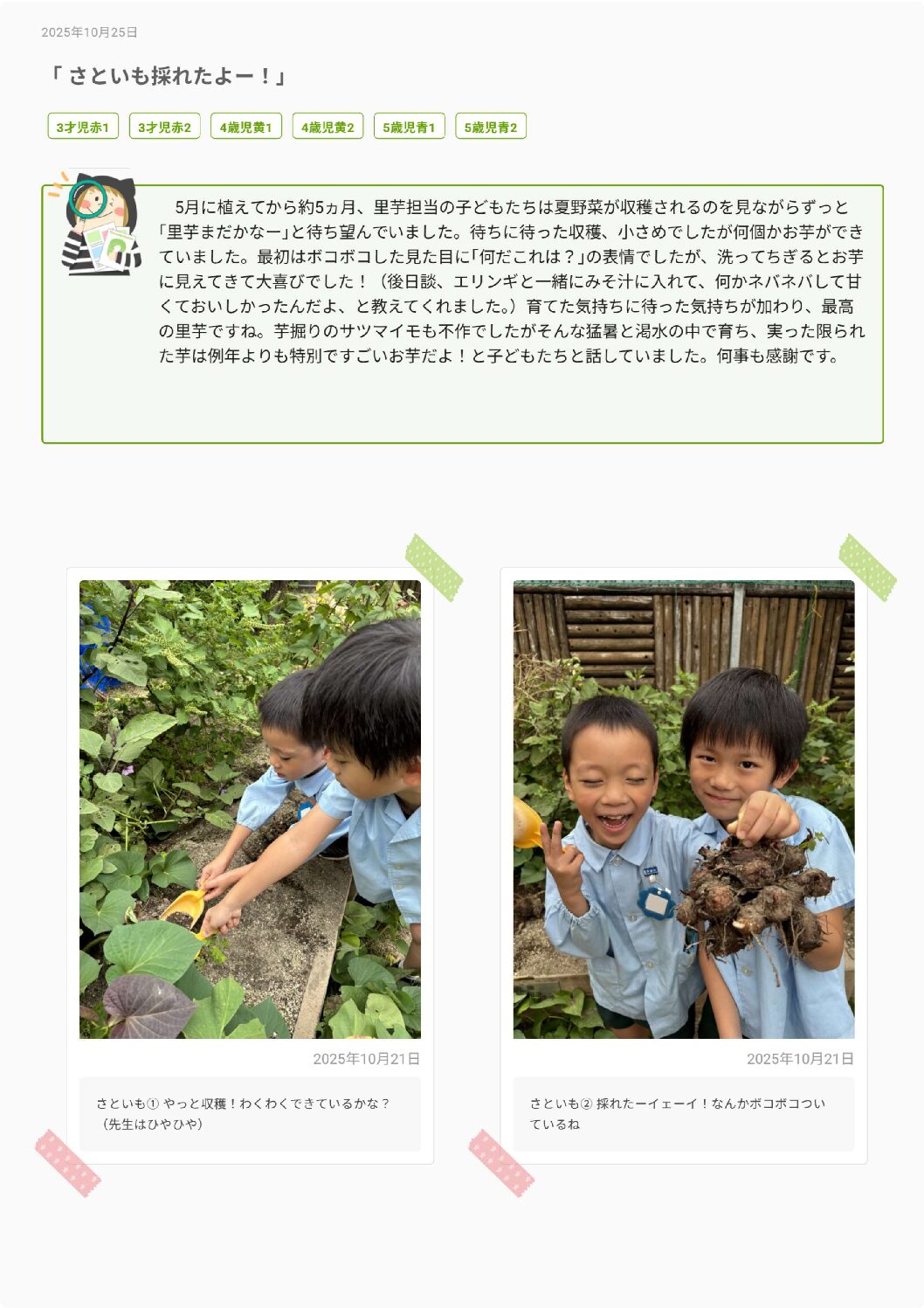 TOP > 広路幼稚園のストーリー > 「 さといも採れたよー!」